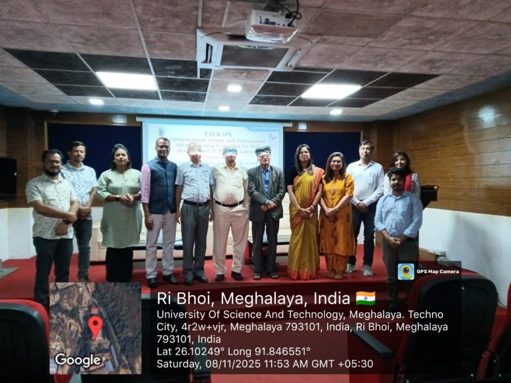 9th Mile, Khanapara, Ri-Bhoi, Saturday, November 8, 2025: The University School of Law and Research (USLR), University of Science and Technology Meghalaya (USTM), in collaboration with the All India Lawyers Union, Assam Unit, organised an enlightening talk on “Constitutional Values and Professional Ethics: Guiding Principles for Skill Development of Budding Lawyers” on November 8, 2025, at the NKC Auditorium, USTM.