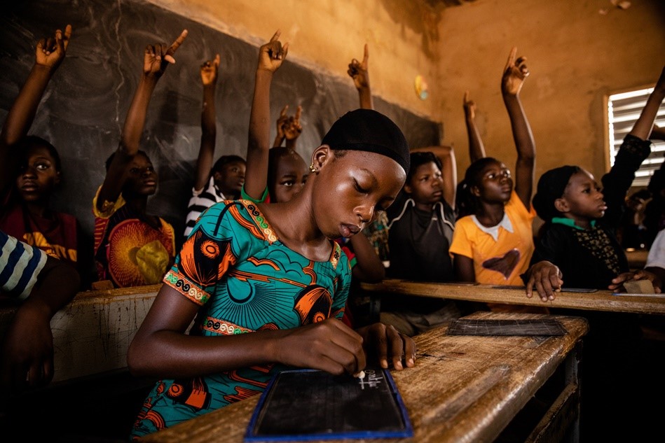 Head down, serious, 11-year-old Rachidatou Sana concentrates on getting her answer exactly right. Already an outstanding pupil at Kua C school in Bobo-Dioulasso, she loves mathematical problem-solving but will have to find her own solution in the fight to keep on with her studies. Like many girls her age in Burkina Faso, Rachidatou was born to poor parents (her mother is illiterate) and is daily torn between home chores, earning a living and studying to better her situation. All she wants is an equal chance, the same as everyone else. She plans to go to college to train as a nurse ‘so I can help others and my family.’