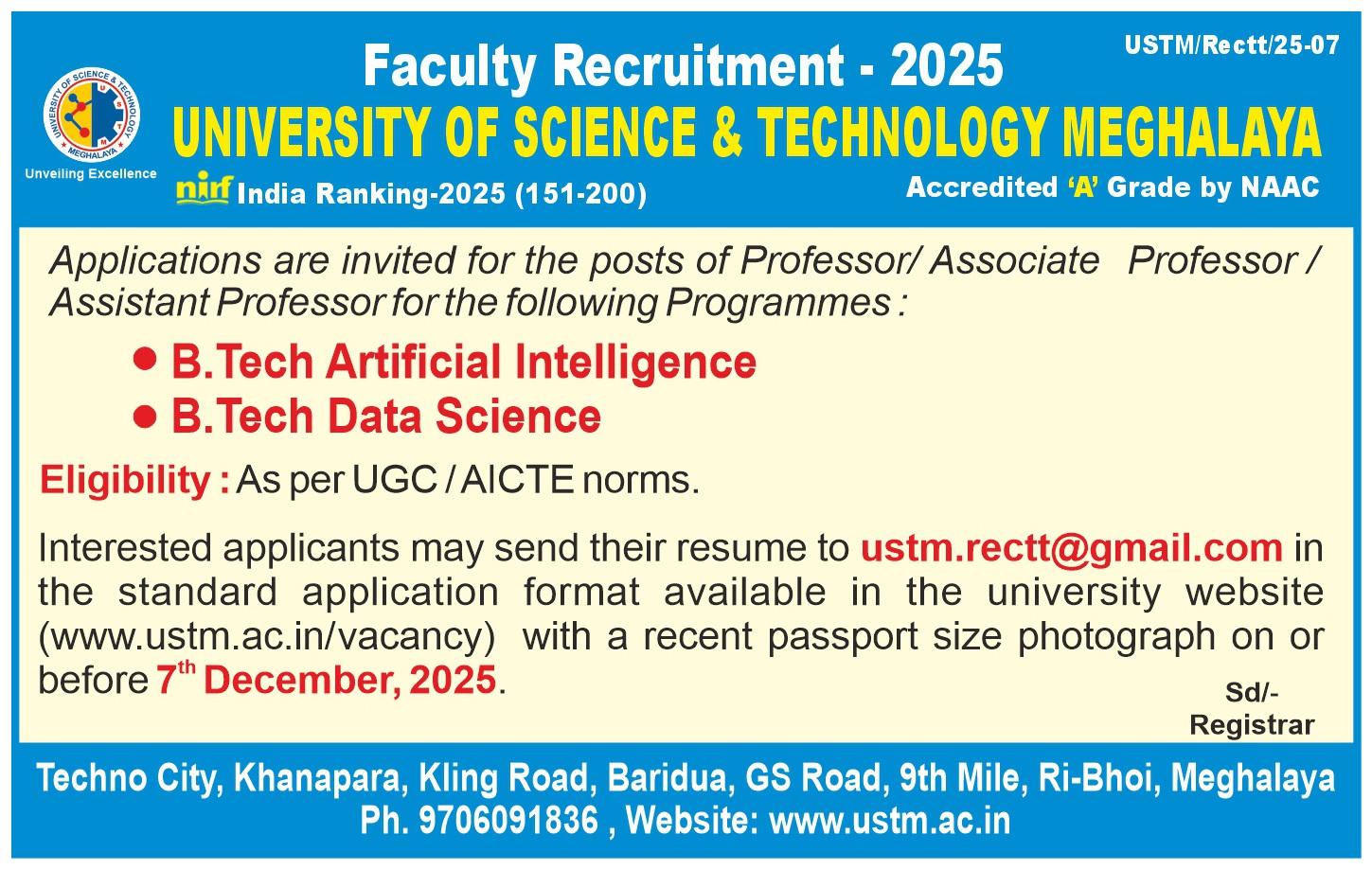 Faculty Recruitment Notification – November, 2025